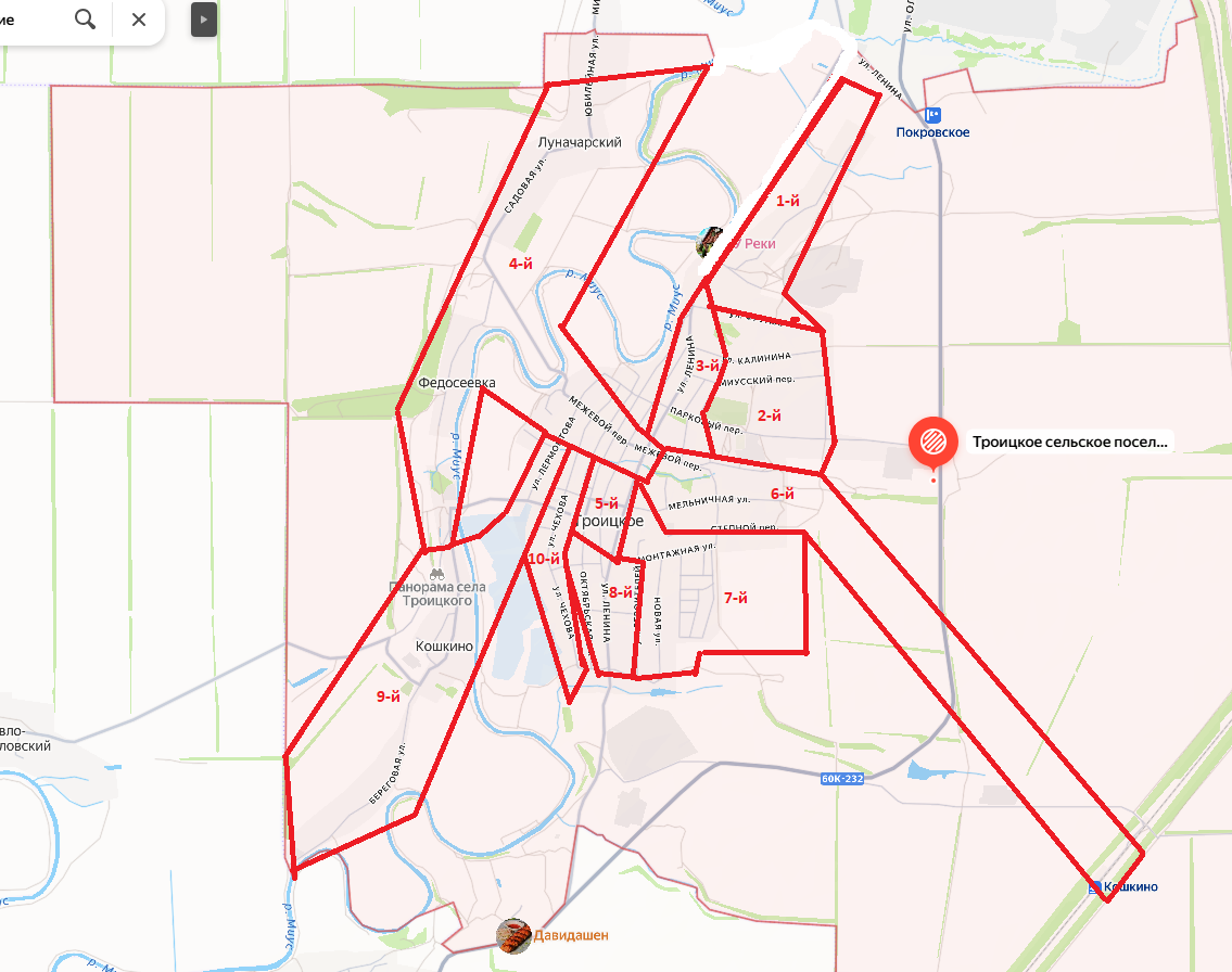 пос. Луначарский пос. Федосеевка с. Троицкое |